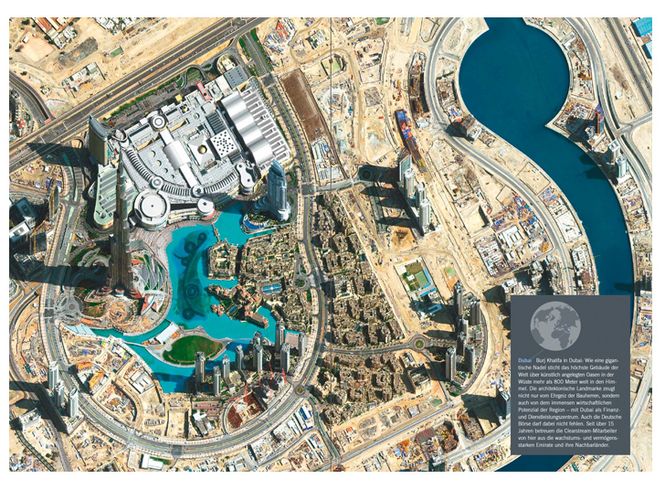 Auf dem Weg zu einer globalen Börsenorganisation war 2011 ein ereignisreiches Jahr für die Gruppe Deutsche Börse. Die angestrebte Fusion mit der New Yorker Börse NYSE Euronext sollte ein weiterer Schritt in diese Richtung sein und bestimmte das Tagesgeschehen. Ausgang: ungewiss. Die Aufgabe für den Geschäftsbericht: ein Konzept, das für jede erdenkliche Fusionsentscheidung funktioniert. Der Fokus auf die globalen Standorte der Deutschen Börse passte perfekt – denn mit und ohne Fusion zeigen sie, dass das Unternehmen weltweit agiert und präsent ist.